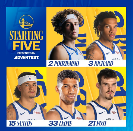 看看勇士的首发,莱昂斯、桑托斯、波斯特、波姐、理查德